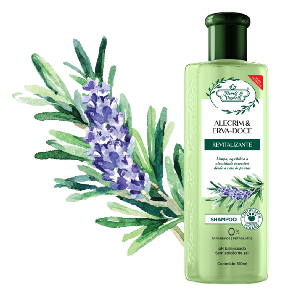 O Shampoo Alecrim & Erva-Doce Revitalizante Flores & Vegetais, conta com uma fórmula eficaz de limpeza, que proporciona equilíbrio da oleosidade excessiva, da raiz as pontas. Elaborado com extratos naturais (Alecrim e Erva- Doce) cuja ação refrescante e revitalizante, garantem leveza e suavidade para os fios e couro cabeludo, essenciais a vitalidade e beleza dos cabelos.
